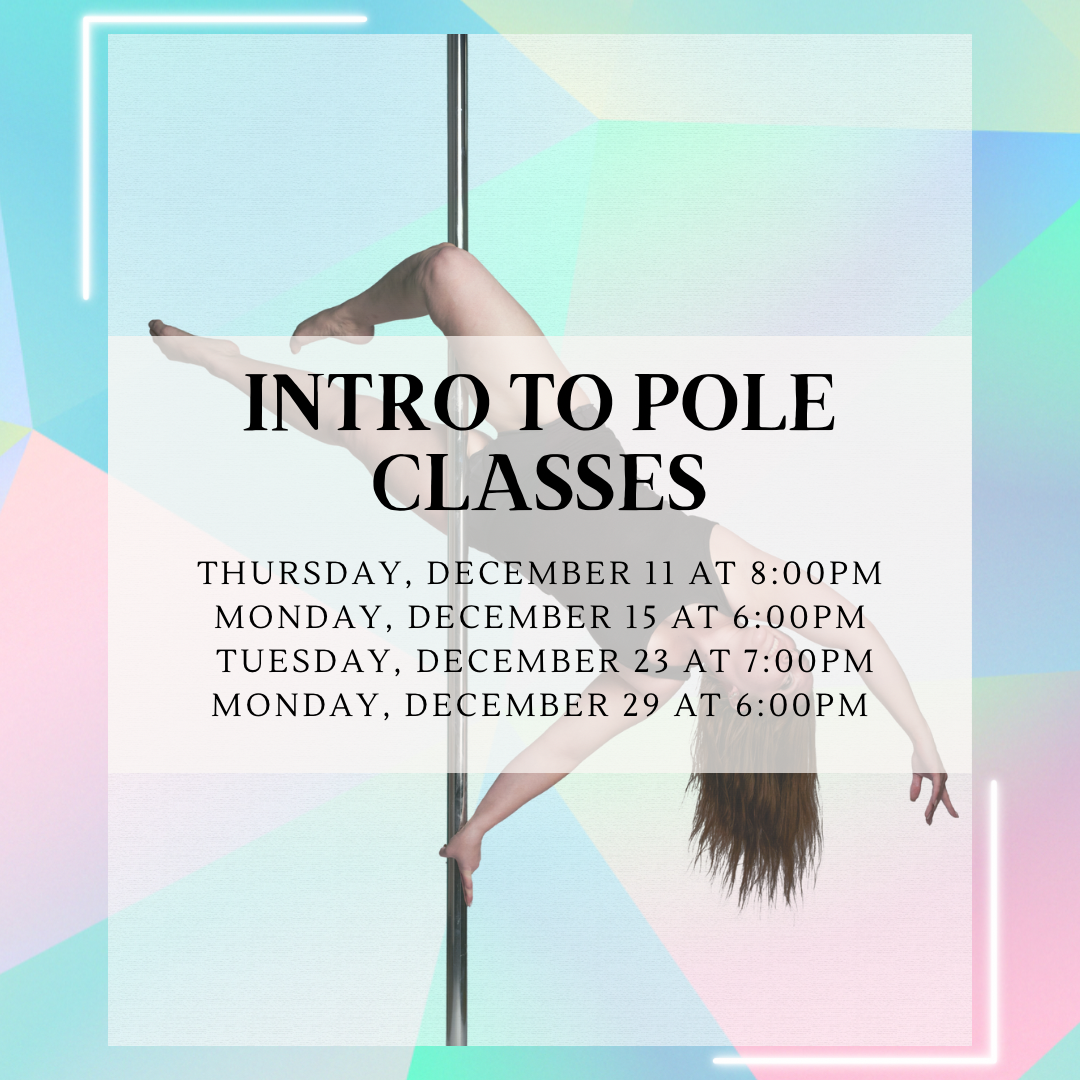 $15 + tax Intro to Pole classes - this is our cheapest price and over 40% off! Each class is standalone, take one to try it or all four if you love it! Bring a water bottle and yoga mat if you have.