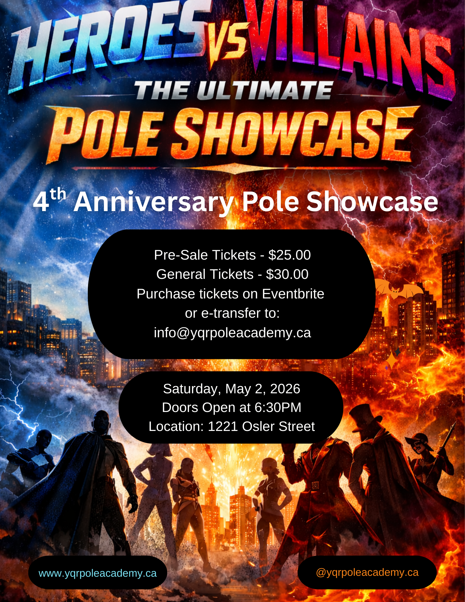 Get tickets online or via e-transfer to info@yqrpoleacademy.ca: